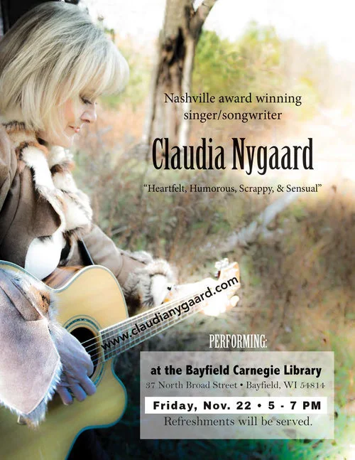 Join us as we welcome Nashville award winning singer/songwriter Claudia Nygaard! Claudia will be performing music at the library for a special concert. Refreshments provided!