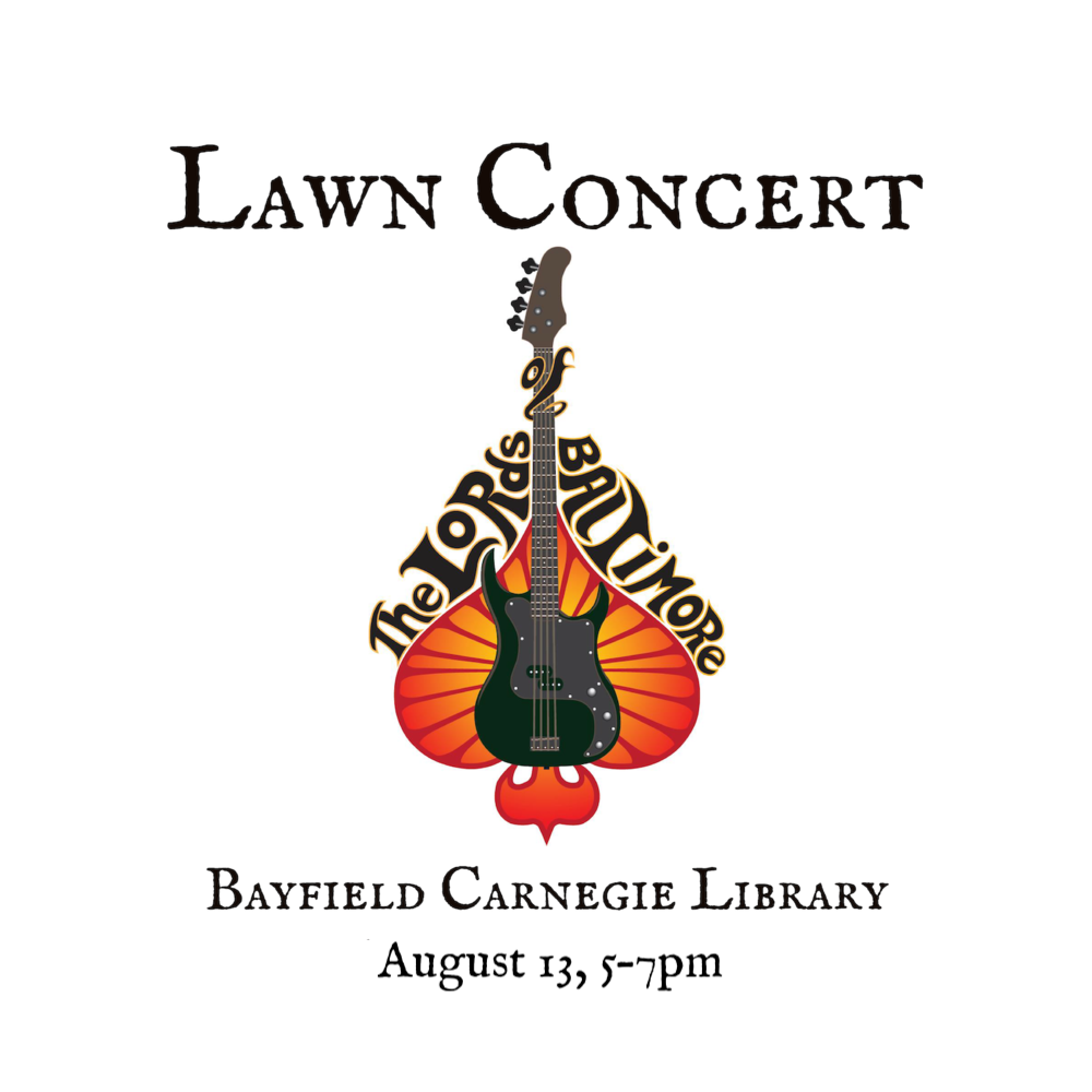 Lords of Baltimore Music on the Library Lawn Friday, August 13, 2021 5:00 PM 7:00 PM 17:00 19:00 Bayfield Public Library 37 North Broad Street Bayfield, WI, 54814 United States (map) Google Calendar ICS Live Music! Everyone welcome-No matter your age!Bring a blanket or chair.August 13th, 5-7pm